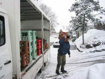 Dafür liefert Ihnen unser Verkaufsfahrer die Getränke nach Hause, an Ihren Getränkeplatz – also direkt in die Wohnung oder den Keller.